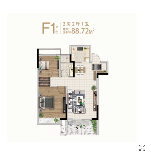 2室2厅1卫 88.72㎡