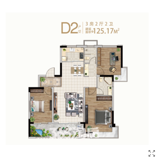 3室2厅2卫 125.17㎡
